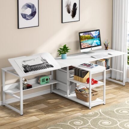 “Two Person Desk, 94.5? Double Computer Desk with Storage Shelves” has been added to your cart. View cart