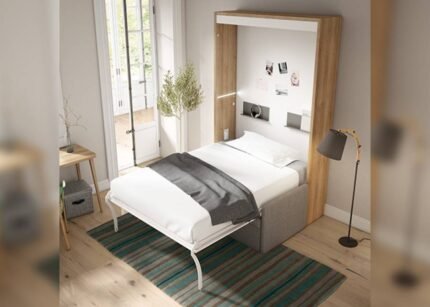 Bedroom with vertical folding bed with sofa