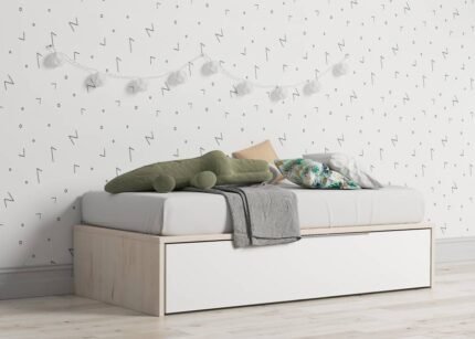 Trundle bed with two drawers, upholstered backrest and arms