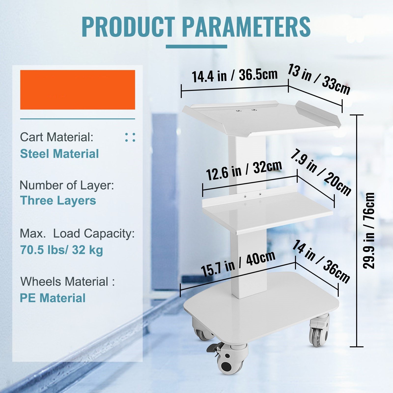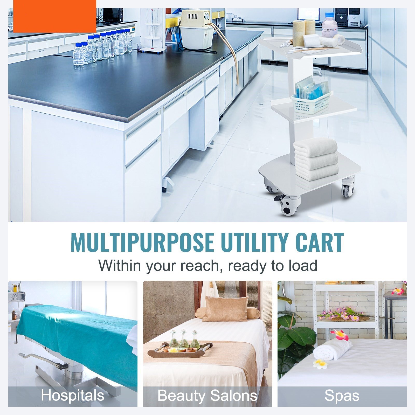 3 Trays Utility Cart 3-Layer Trolley Heavy Duty Lab Dental Rolling Utility Cart with 4 PE Wheels 2 of which can be Locked for Fixing Heavy-Duty with 33Lb Load Capacity