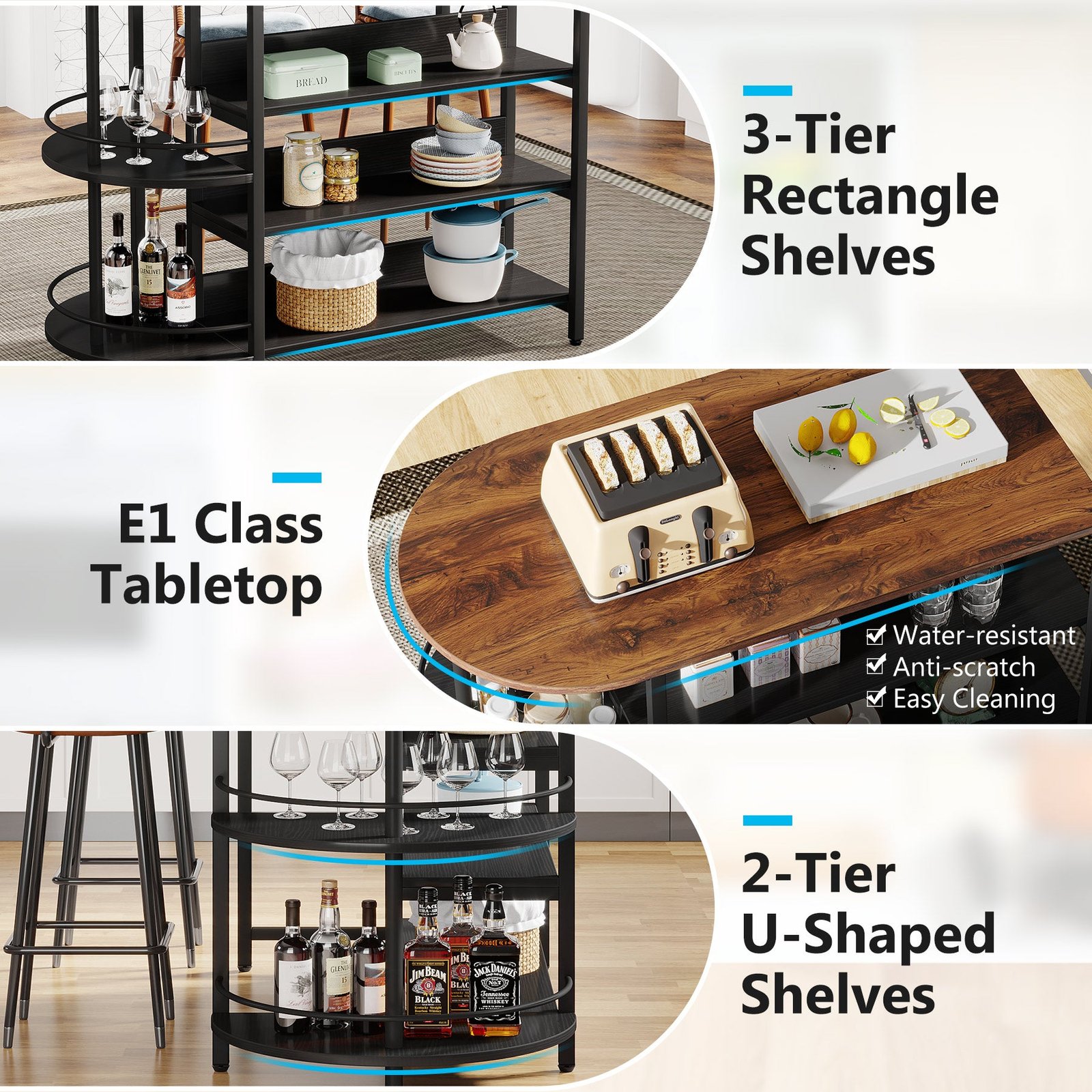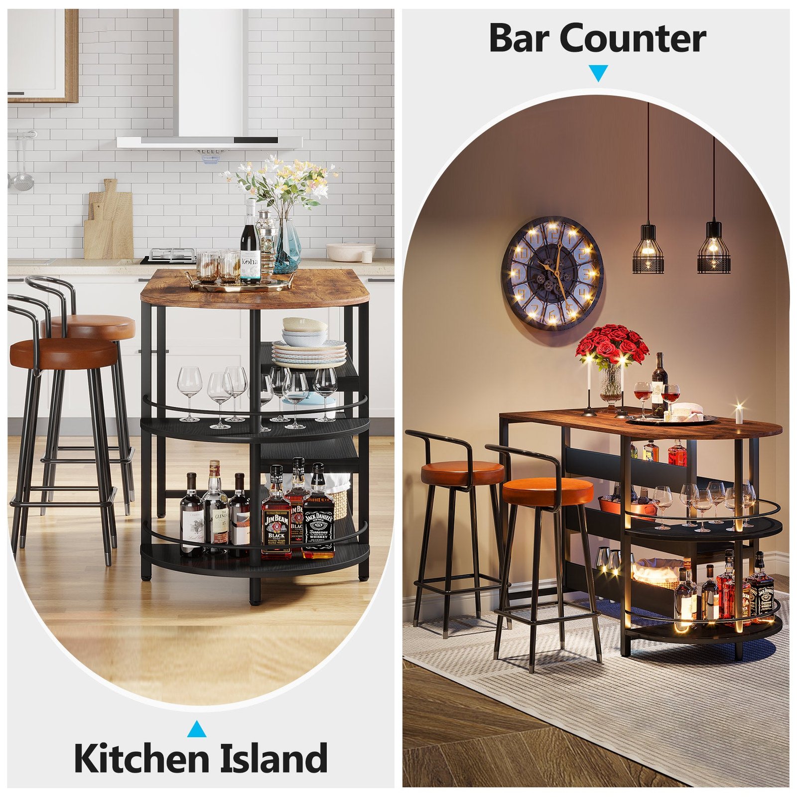 Spacious U-shaped Desktop ? Island Table offers a spacious u-shaped worktop for food prep and cooking deliciously for your family. Measuring 43?L x 21.5?D.