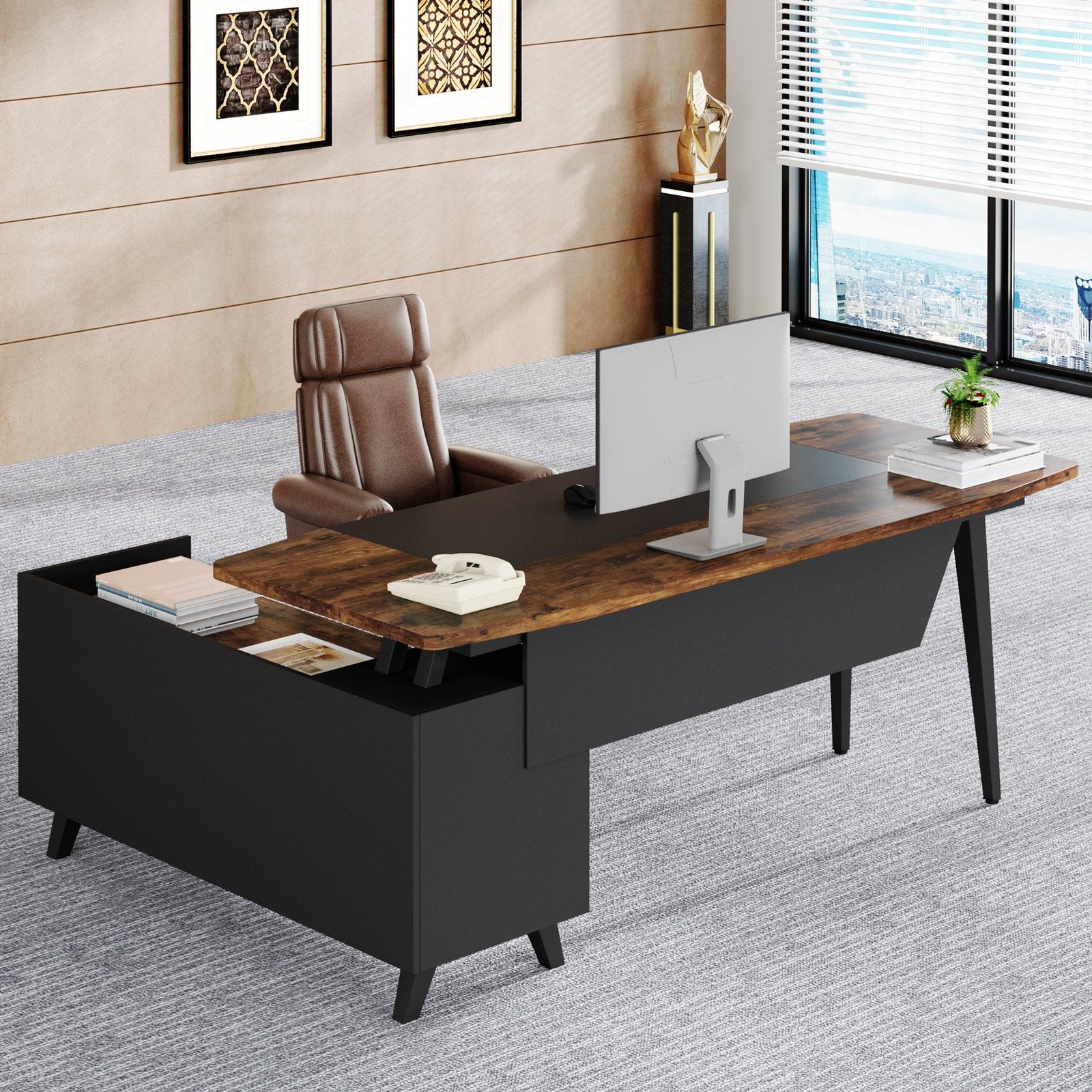 70.9? L-Shaped Executive Desk, Large Computer Desk with 47? File Cabinet