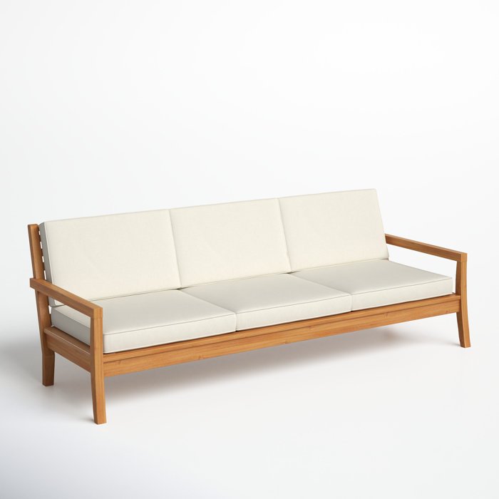 This 3-seater outdoor couch makes it easy to kick back and enjoy your backyard with friends and family. Constructed of solid teak sourced from sustainable plantations, the sturdy frame is given a natural oil finish that highlights the woodgrain and offers enhanced durability. Plush foam cushions are upholstered in antique white with a fabric that is both UV resistant and a breeze to clean. A matching set is also available for purchase to complete your outdoor ensemble.