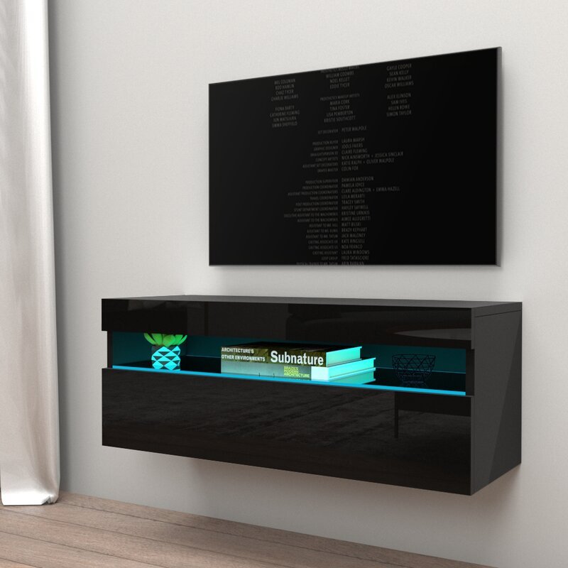 Aidals All High Gloss Modern Wall Mounted Floating TV Stand, Double 79″ Width Up to 88-inch TVs can be accommodated.