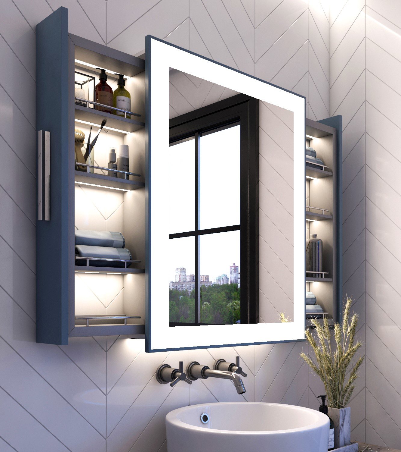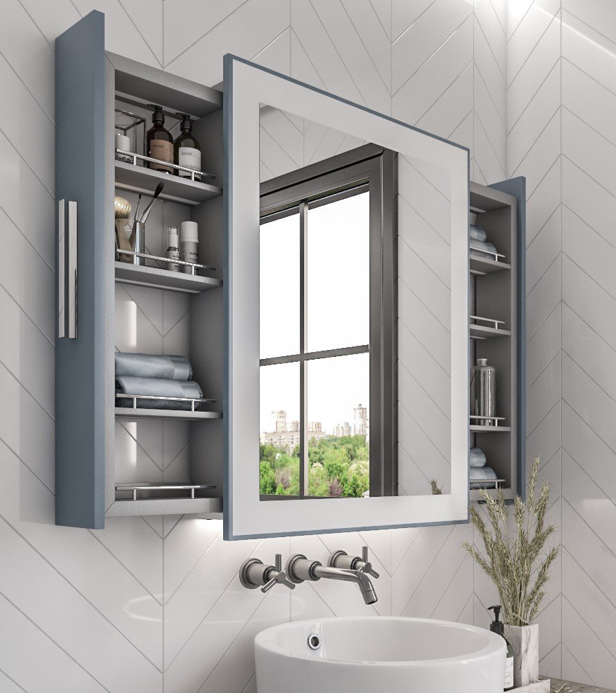 enjoy the charming decorative look combined with the functional use with alba bathroom mirror. it has LED lighting units to enhance the design of the mirror and a good vision, in addition to providing a space for keeping your care products away from clutter.