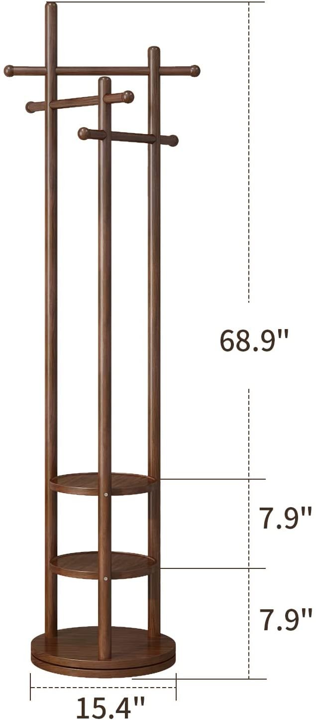 Antique Wooden Rotary Coat Rack Stand with 3 Shelves