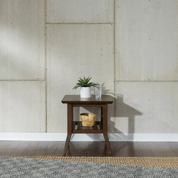 This side table helps you complete your living room while adding a mid-century accent. It’s made from solid and engineered wood in a brown wood grain finish for an element of rustic appeal. The open, slatted bottom shelf gives you a spot to keep a storage basket or books.