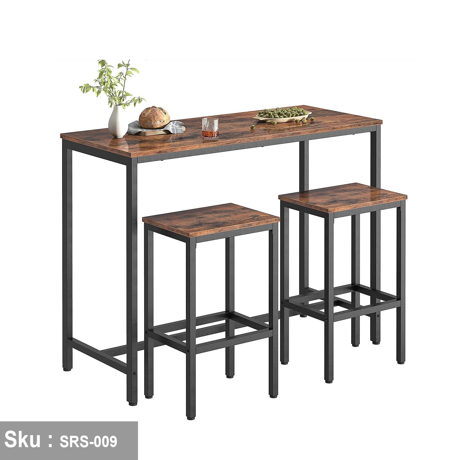 Bar set 2 chairs and table, steel and wood – SRS-009