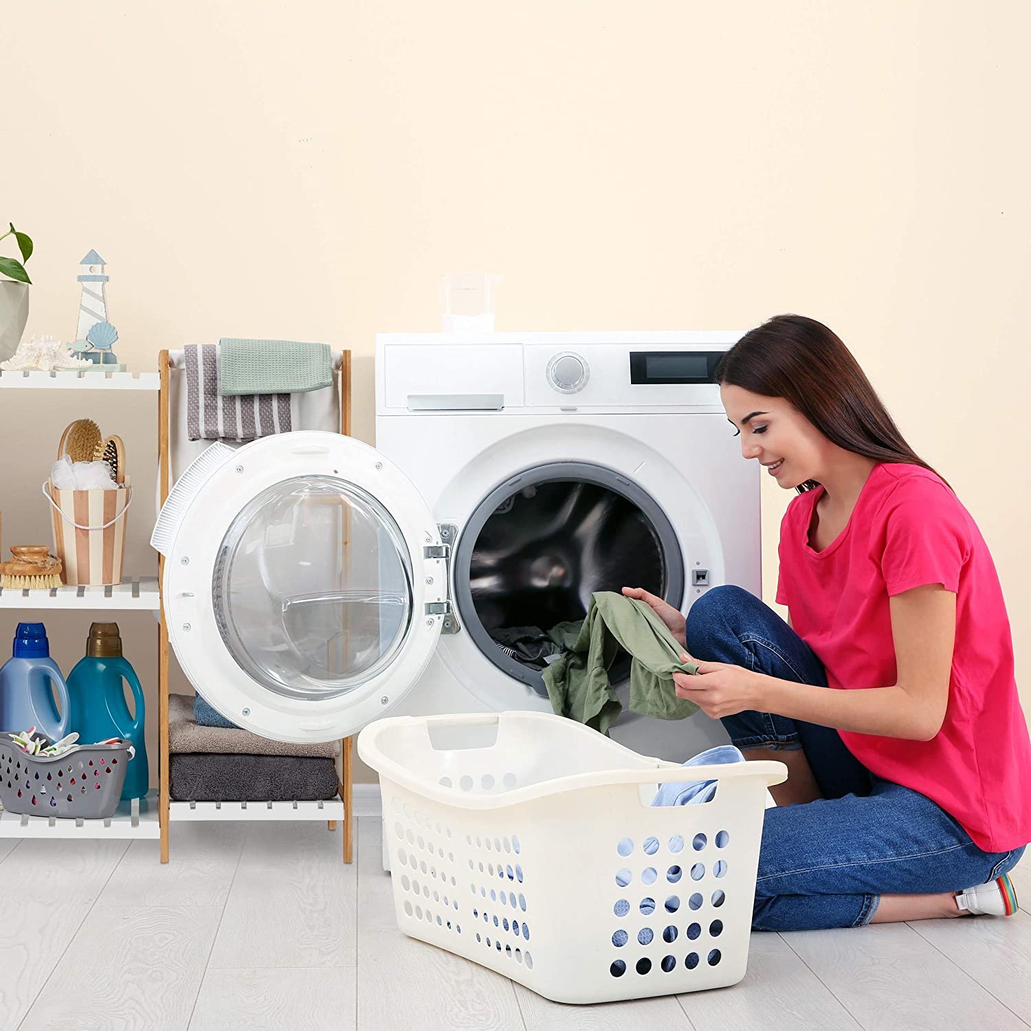 • Versatile: modern bathroom shelf with laundry container can be used flexibly ? also for the bedroom