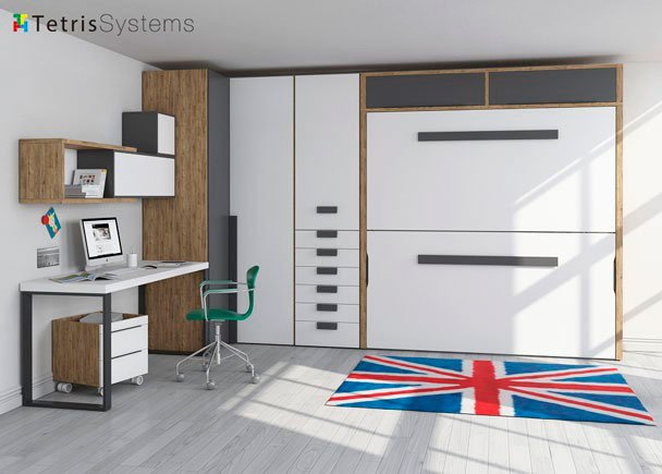 The main advantage that this composition with folding beds offers us is that it provides us with an open space during the day and a large closet capacity, making the most of the corner.
