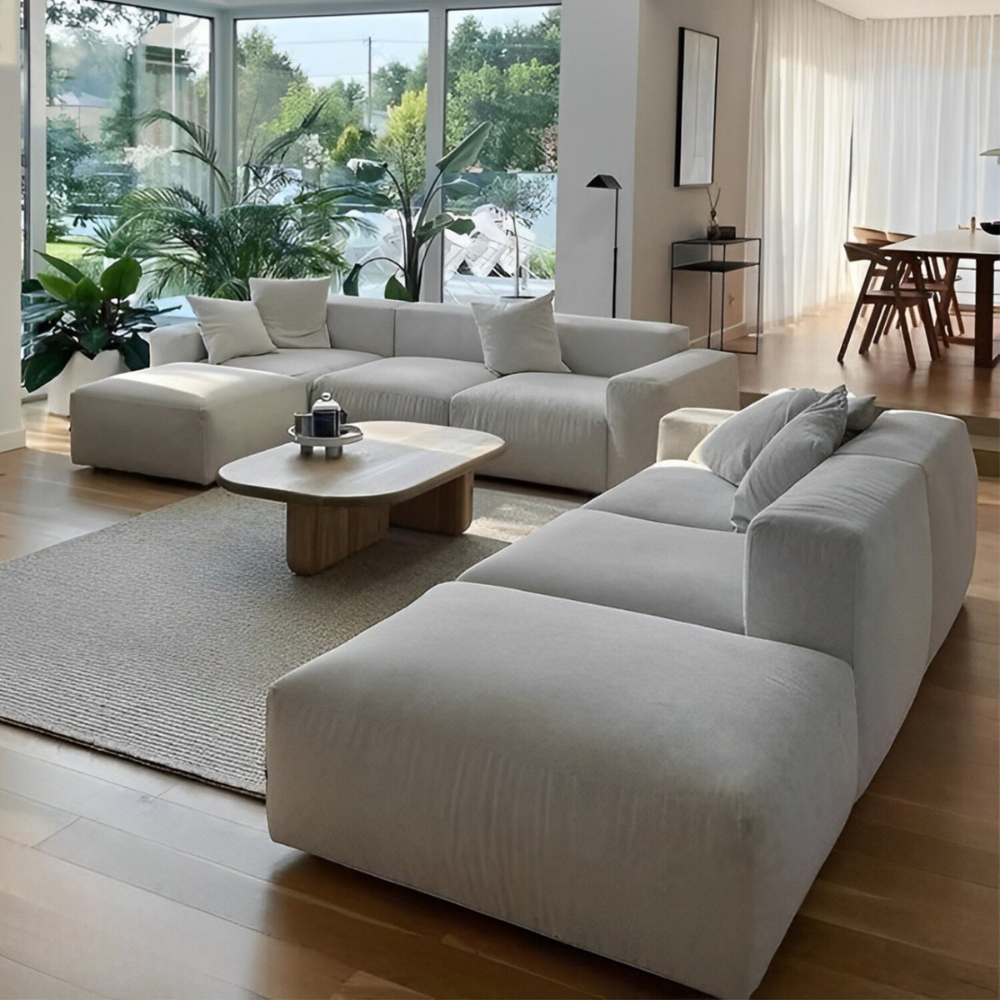 The Oscar Rattan Corner, made of beech wood, is distinguished by its luxurious and durable design, as the beech wood provides solidity and the ability to withstand daily use for long periods. The sofa is upholstered in high-quality fabric such as linen or velvet, which creates a soft and cozy feel and combines elegance and comfort.