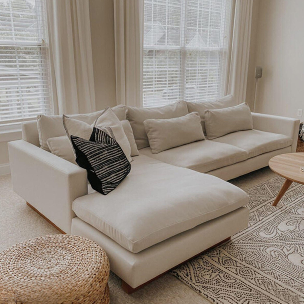 The Oscar Rattan Corner, made of beech wood, is distinguished by its luxurious and durable design, as the beech wood provides solidity and the ability to withstand daily use for long periods. The sofa is upholstered in high-quality fabric such as linen or velvet, which creates a soft and cozy feel and combines elegance and comfort.