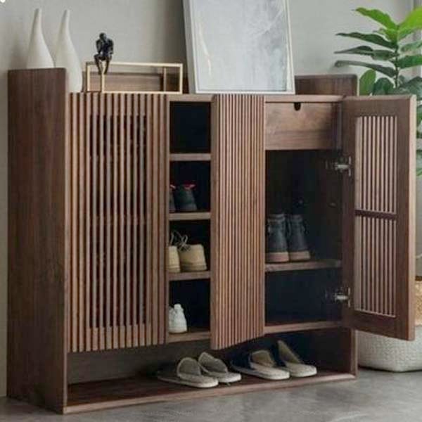 Doors: It has two hinged doors that open to reveal shelves for storing shoes.