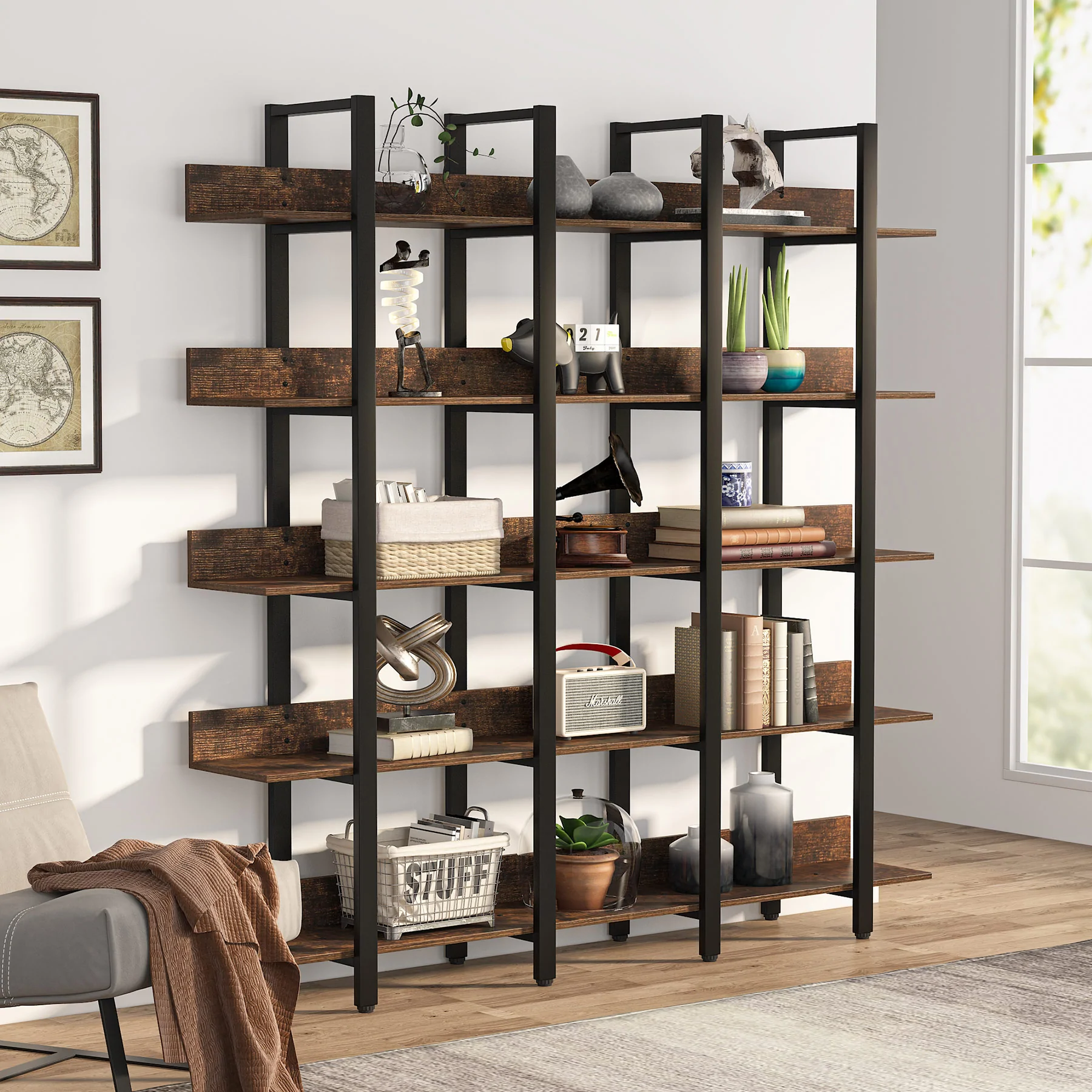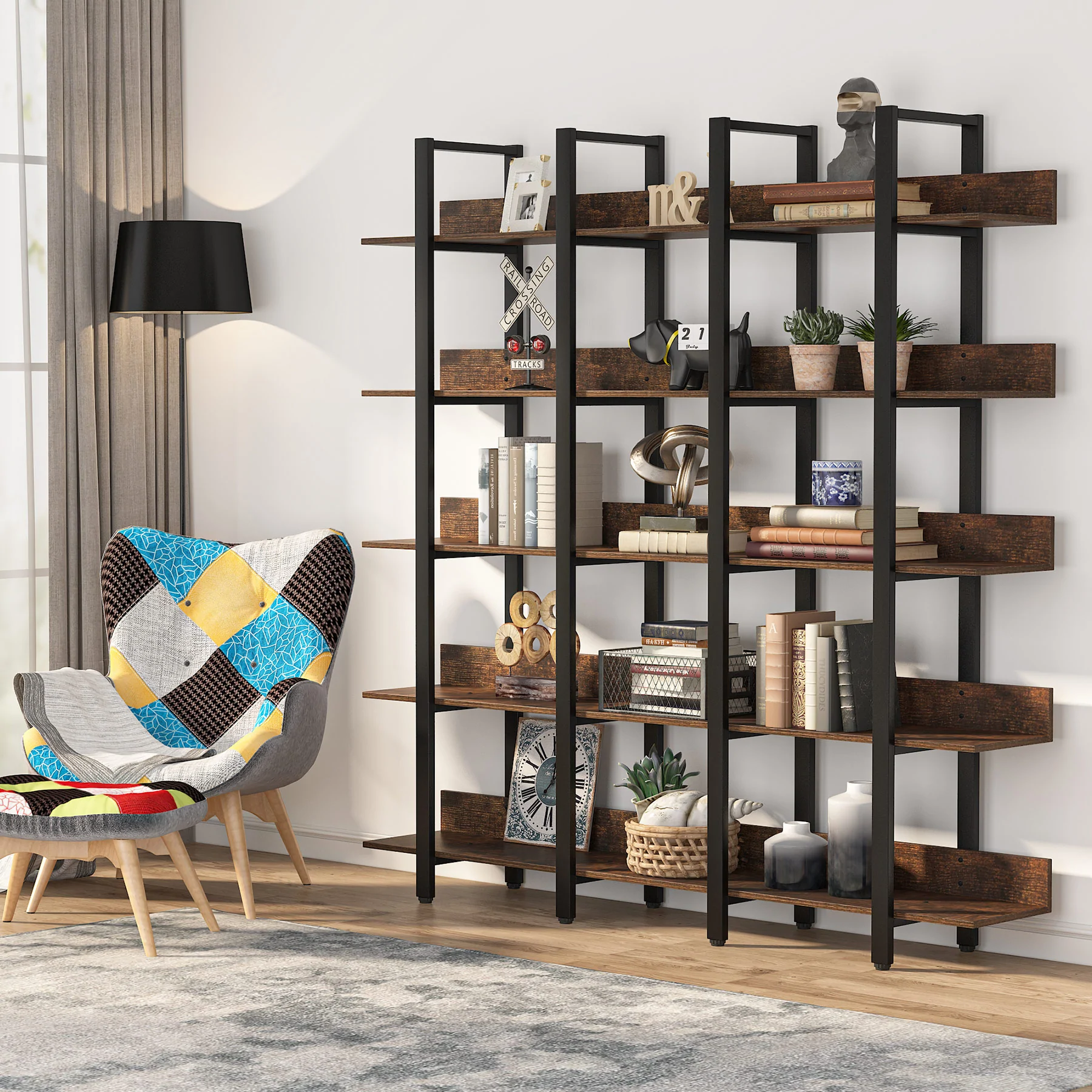 Be the first to review “Bookcase, Industrial Triple Wide 5-Tiers Open Bookshelf” Cancel reply