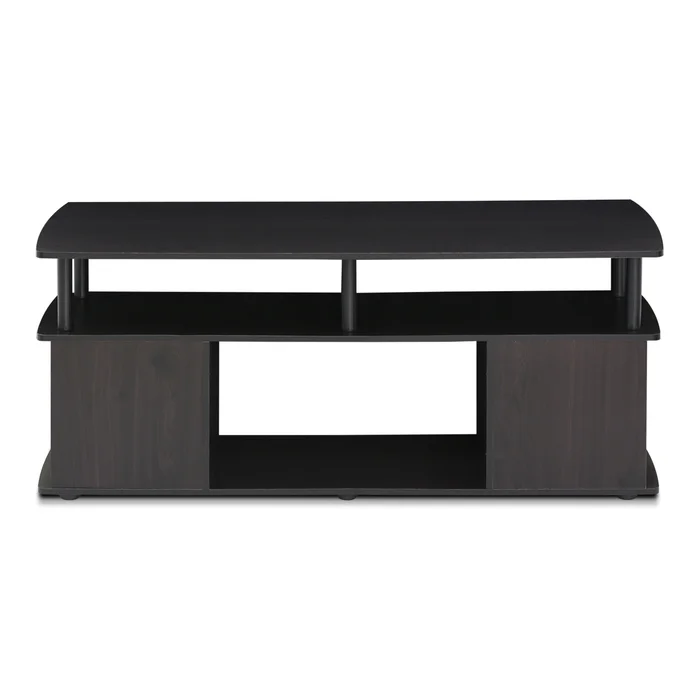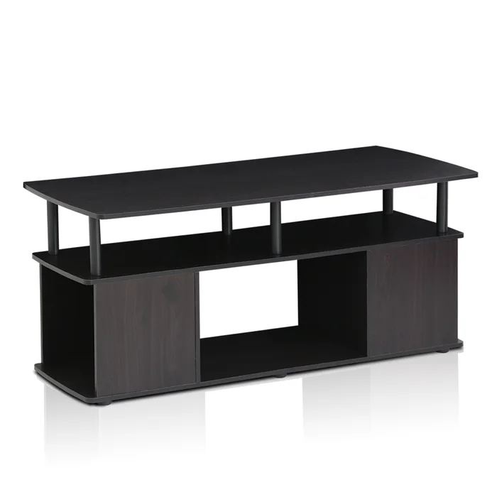 Enhance your living space with our sleek and modern black coffee table featuring open shelves for added storage and display options.