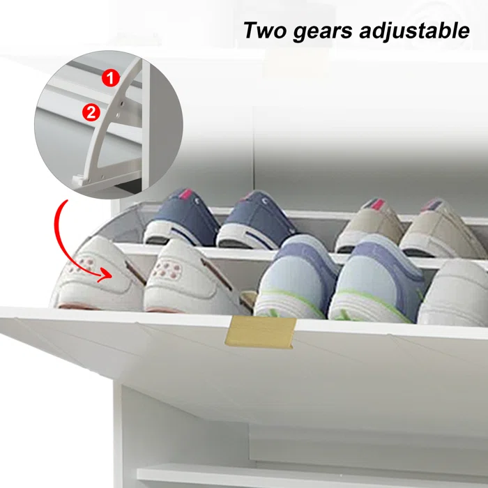 Keep your shoes organized and your entryway tidy with this elegant white shoe storage cabinet. Made of natural wood, it features two spacious drawers to store your favorite pairs of shoes.