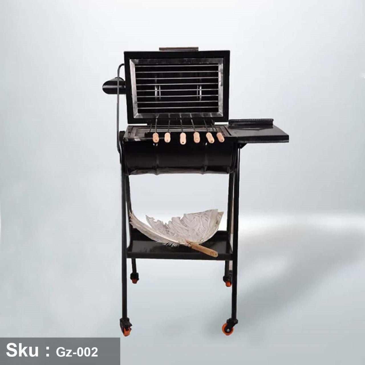 It is made of high-quality materials, argon welding and electrostatic paints. It has a grill grid made of heat-resistant stainless steel. It is easy to transport and store. It comes with skewers and a hob and is availabfor grilling on both sides.