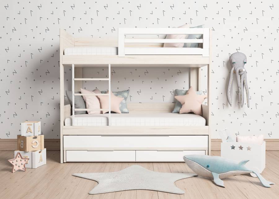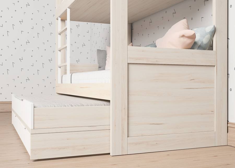 Children’s bunk bed model, with sliding base and 2 drawers with wheels