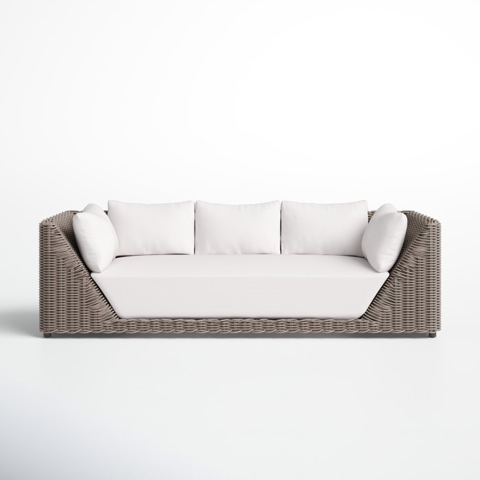 Style and durability fuse for the best of both worlds. Woven all-weather wicker forms an overscale frame for luxurious sofa cushioning in invitingly neutral ivory. Cover or store indoors during inclement weather and when not in use.