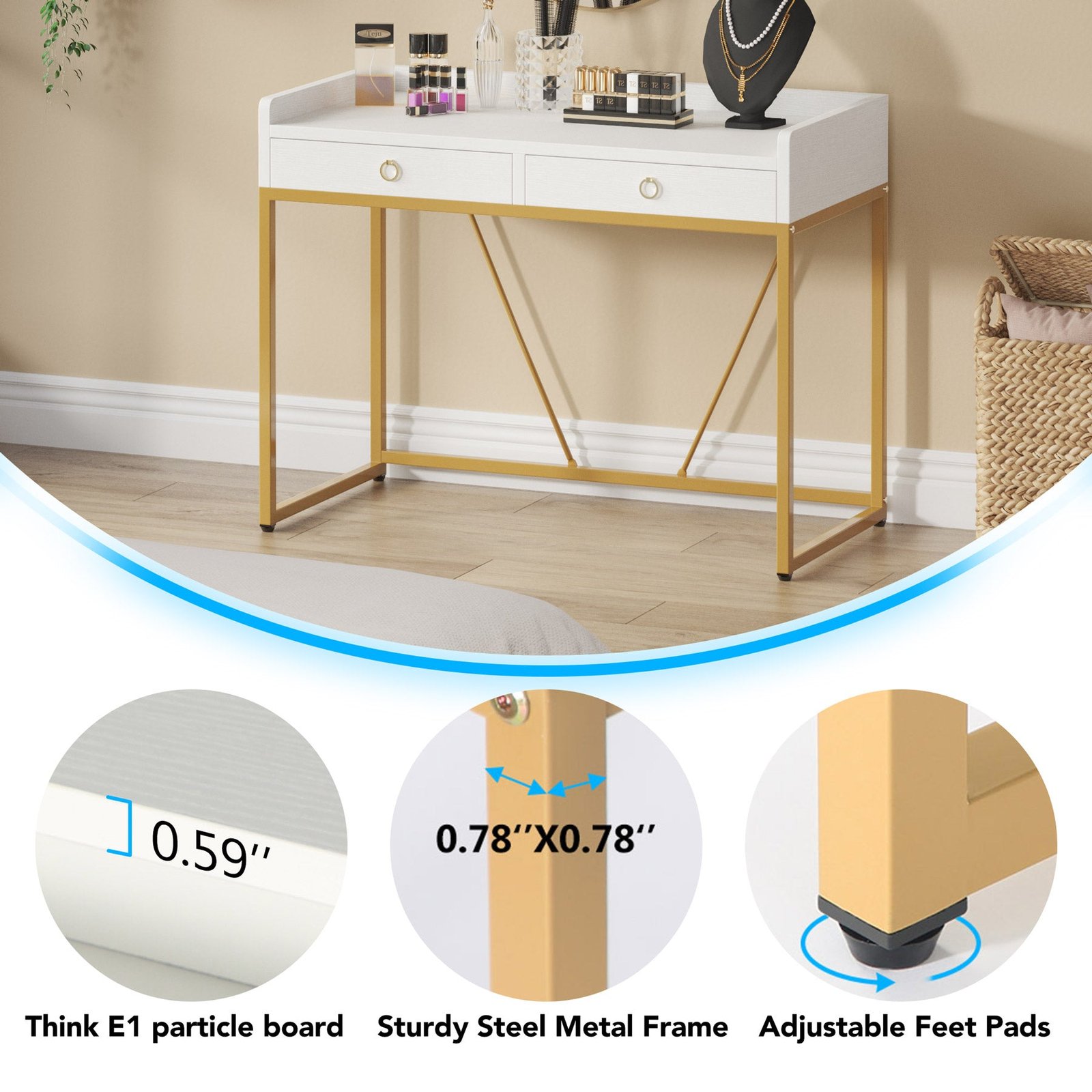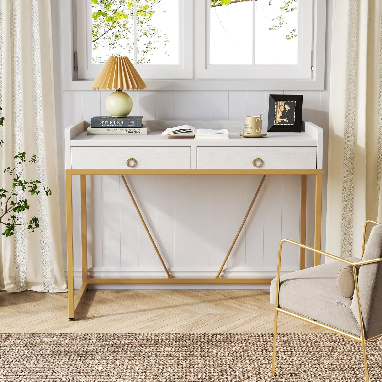 Elegant Modern Computer Desk ? Get a relaxed personal workspace with this white and gold desk in a Clean-lined design that can complement many styles of furniture and create a cozy, delicate corner in your living space. Enjoy the contemporary design of this office desk while getting your work done in the style