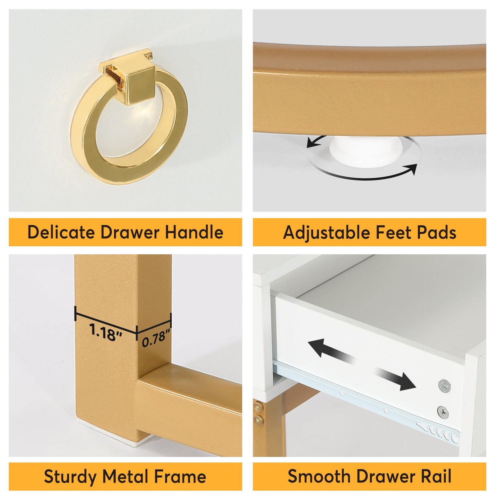 Sleek and Modern Design ? The computer desk features a beautiful white gold color scheme that exudes modern elegance. Its minimalist design is perfect for any contemporary workspace.