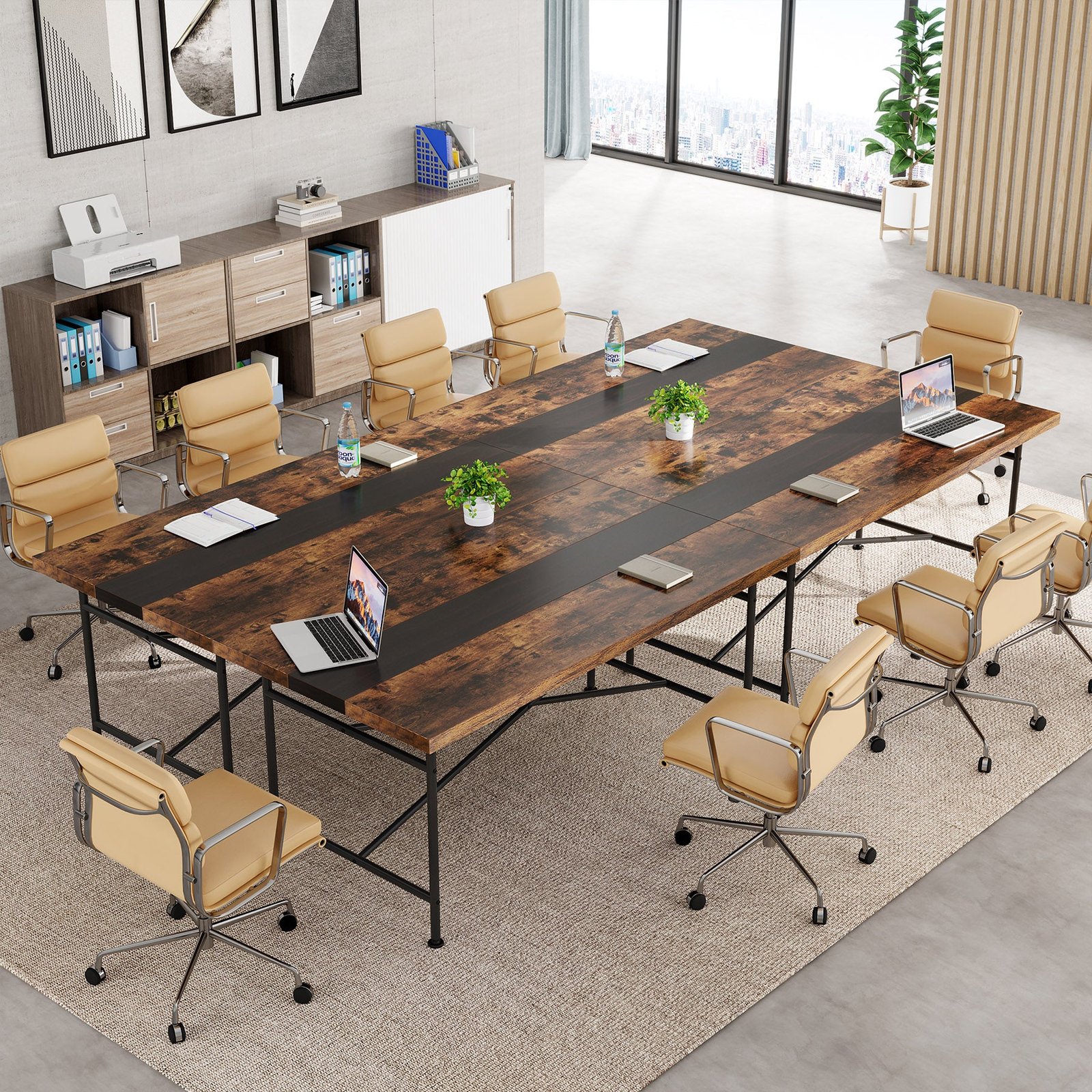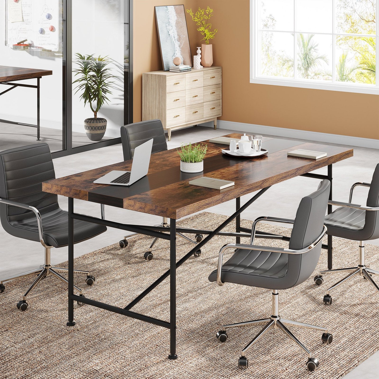 Rustic & Simple Conference Table ? This conference table with the industrial and vintage style will be a unique addition to your conference room. The rectangular table has a patchwork top to bring more charm to your office area. The spacious table top will provide you with great comfort during meetings and is suitable for conference rooms, negotiation rooms, meeting rooms, and offices to meet your different needs.