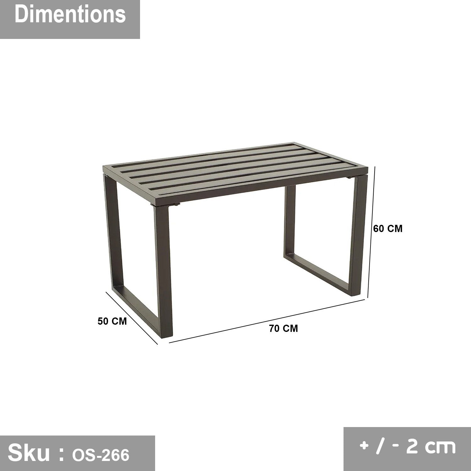 Table: width 70 cm – depth 50 Height 60 cm