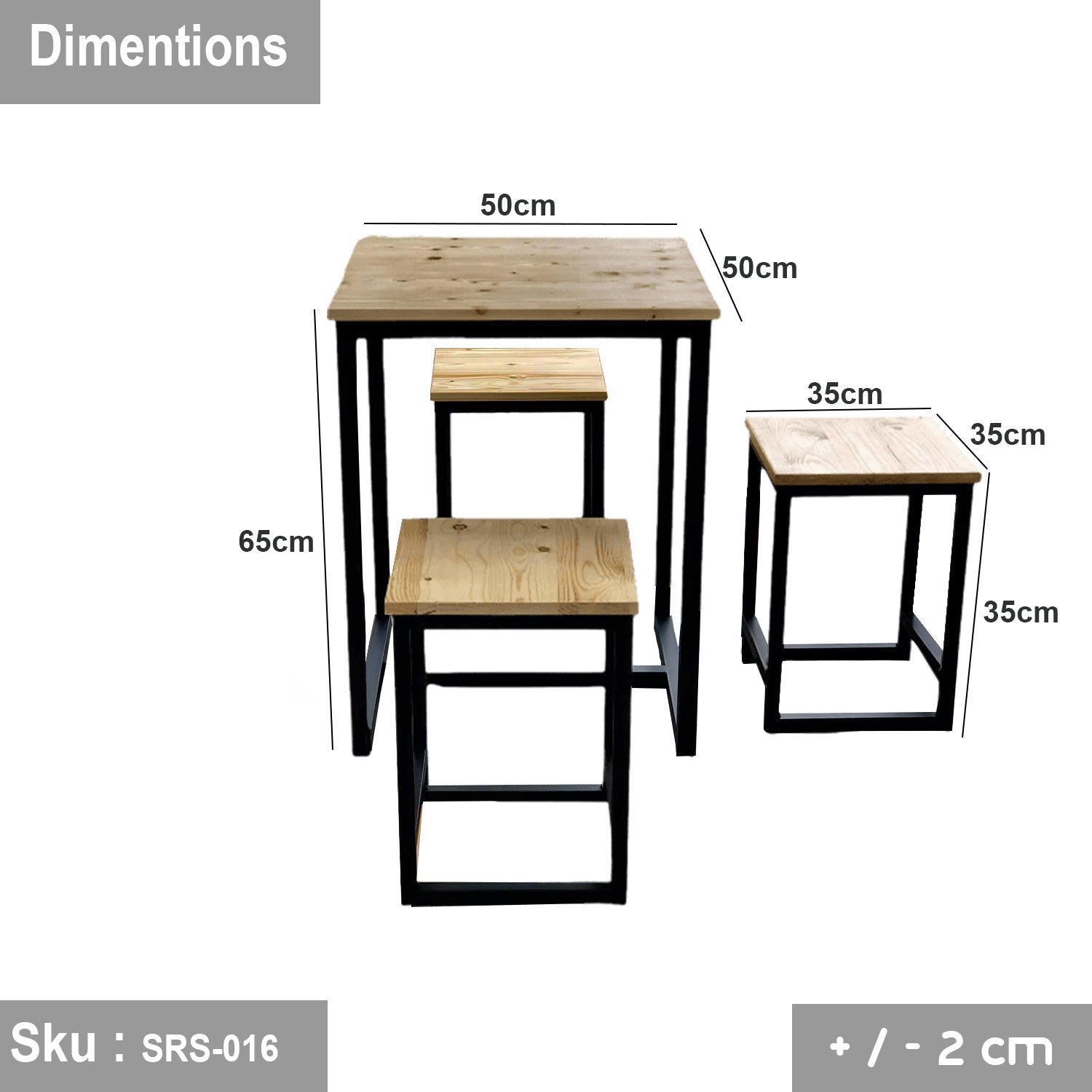 Table: Width 50 cm – Depth 50 cm – Height 80 cm