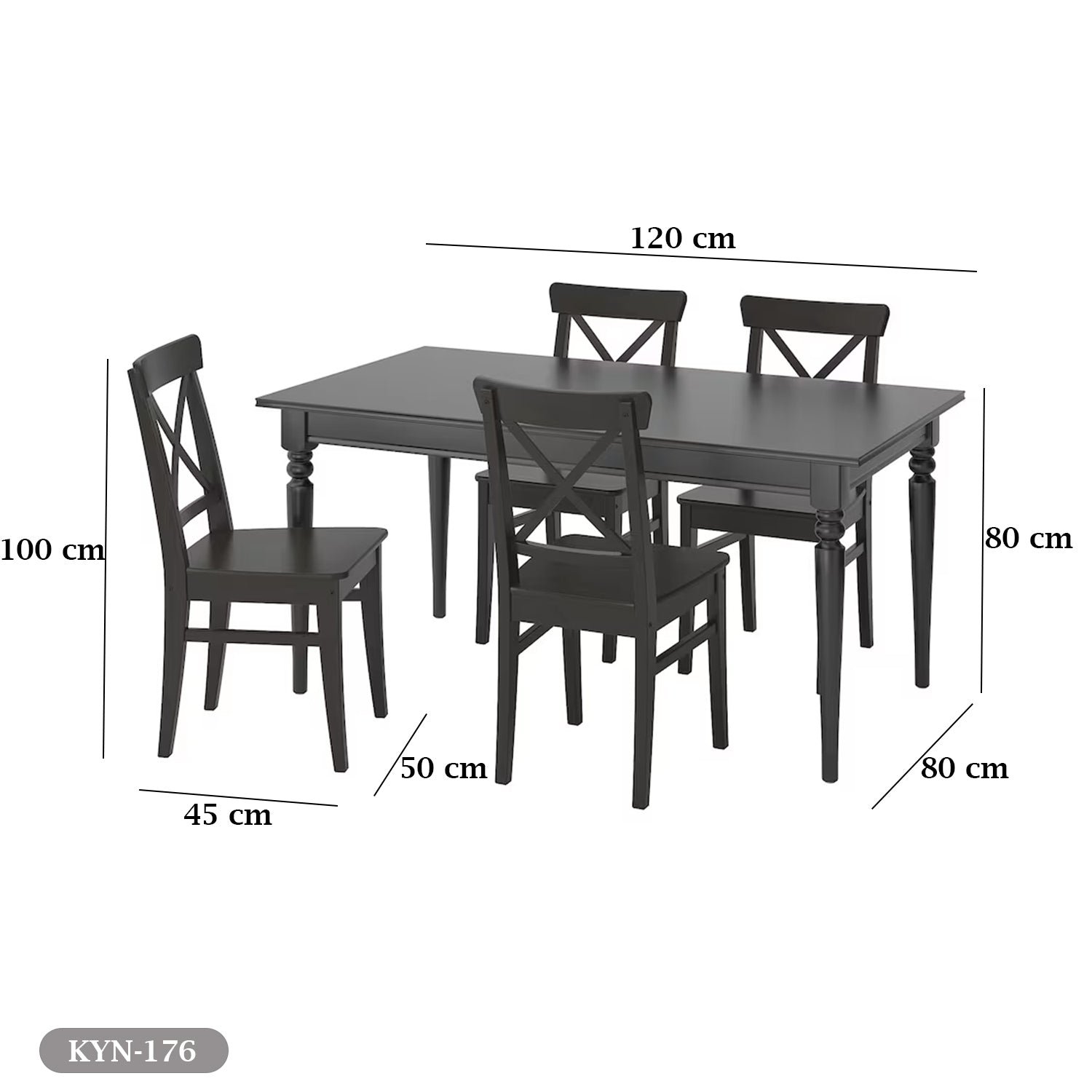Table dimensions: width 120 cm – depth 80 cm – height 80 cm