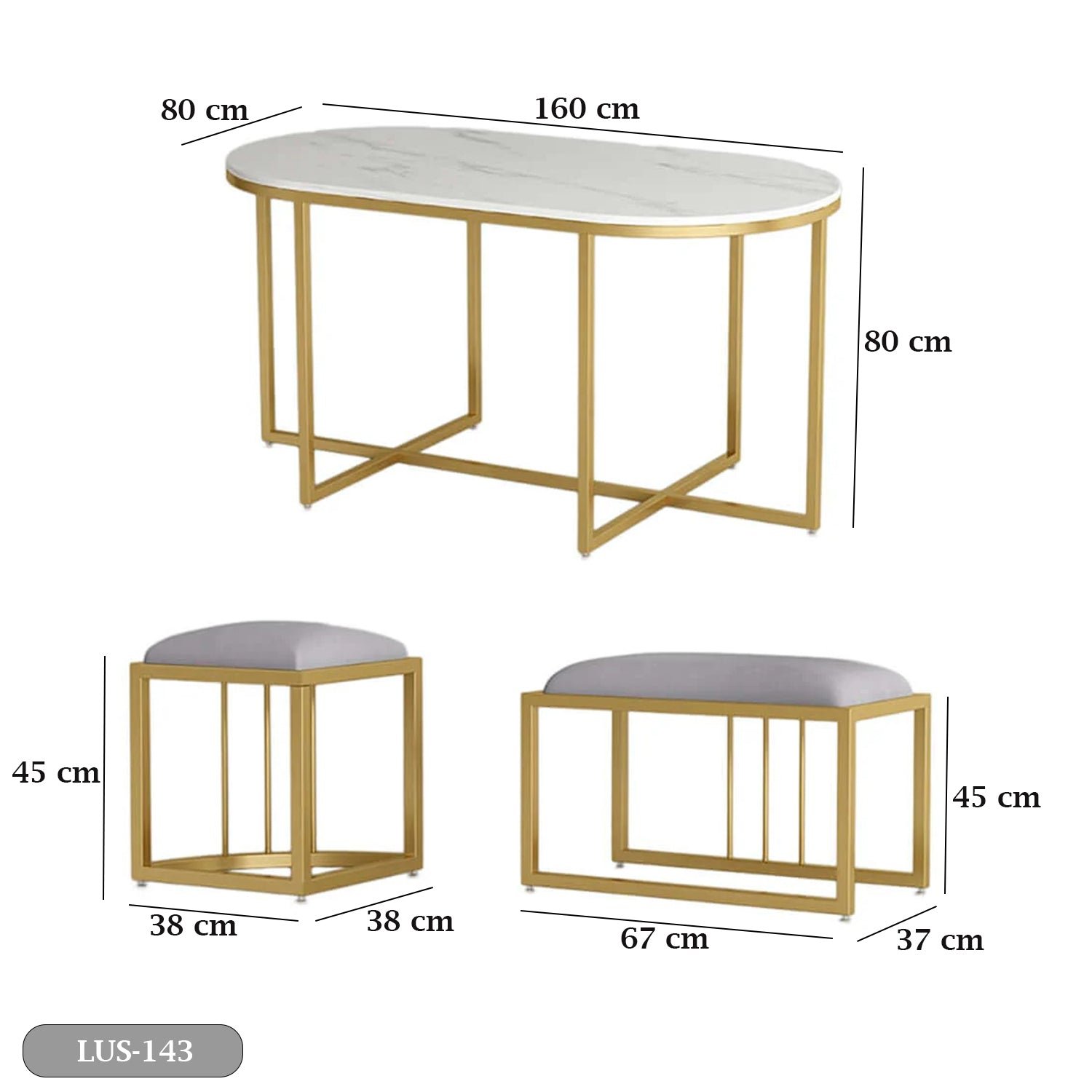 Table dimensions: Width 160 cm – Depth 80 cm – Height 80 cm