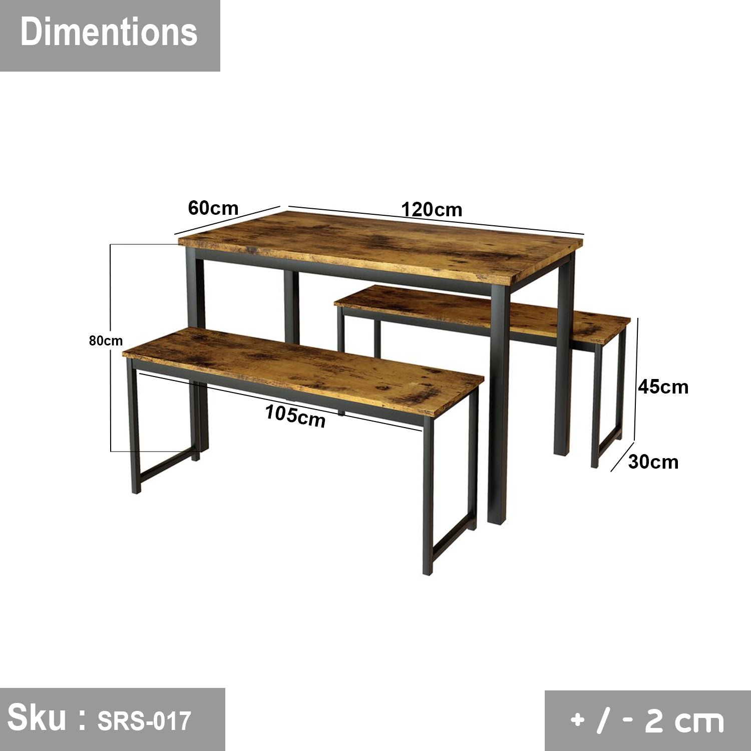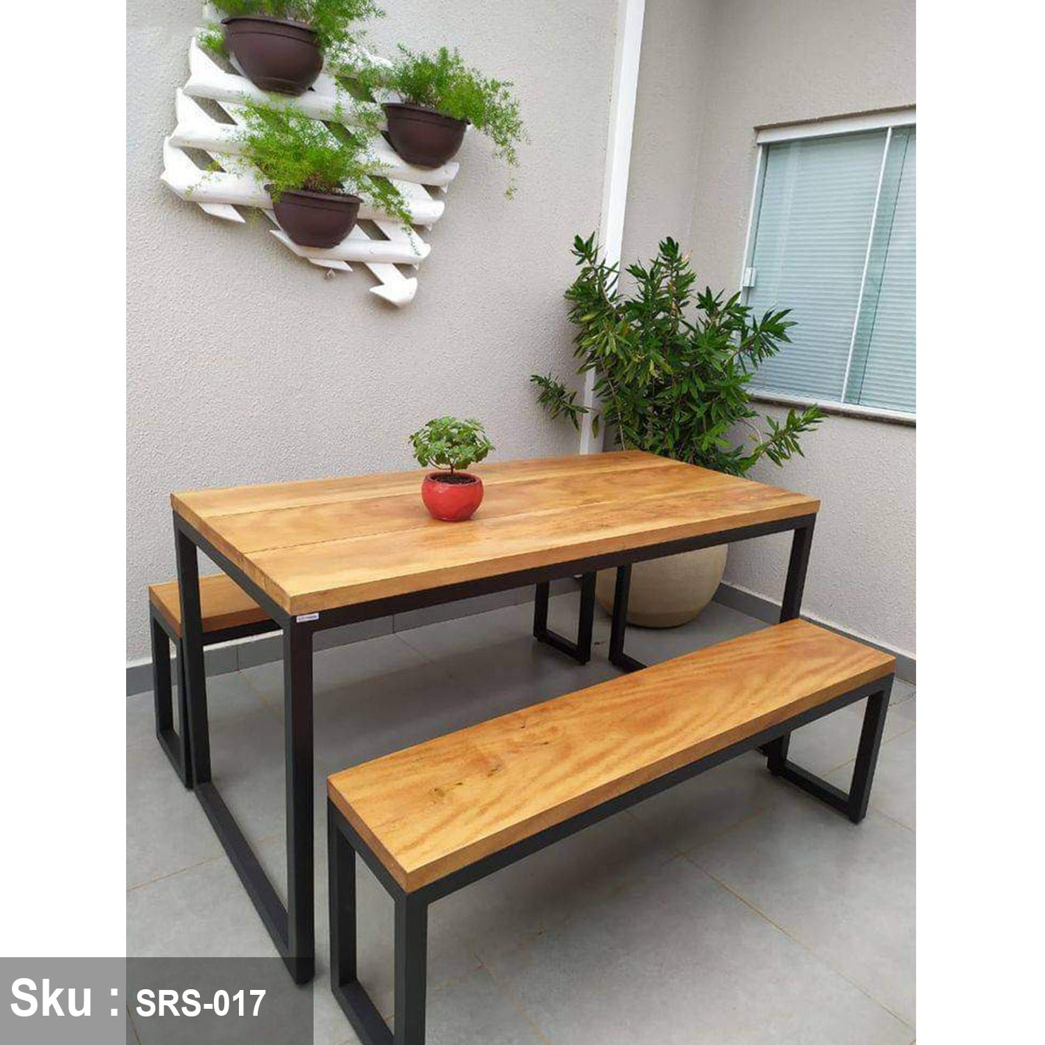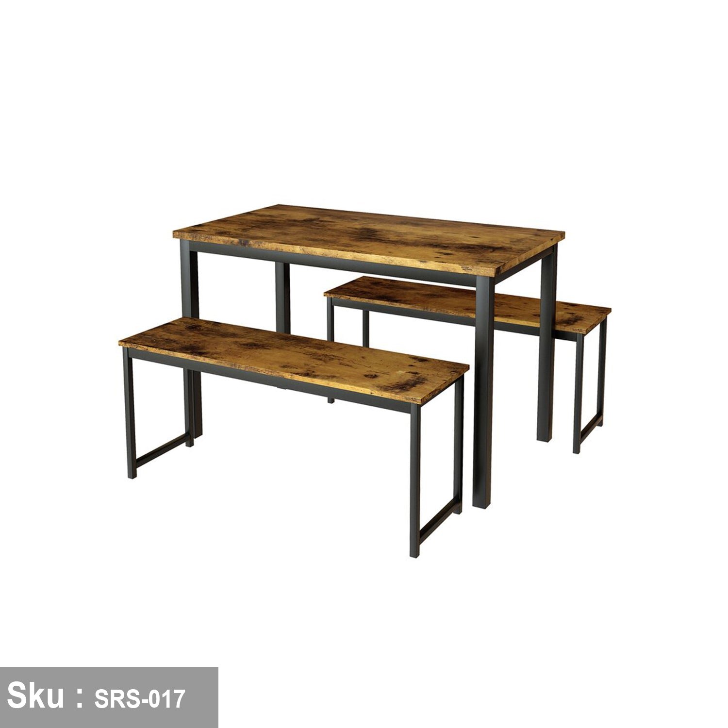 Dining Table and 2 Rectangular Seats, Steel and Wood – SRS-017