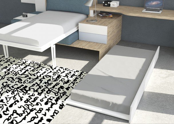 This innovative folding bed plus sofa system that you see in the image can be perfectly integrated into a living room or a study or attic with an auxiliary bed, or perfectly into a modern youth bedroom with all the services and that you will also always find perfectly tidy. A simple gesture and Zassss…! a hidden bedroom and a tidy and orderly-looking environment.