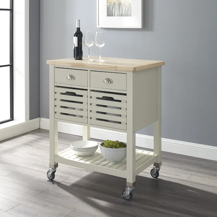 Diwai Rolling Kitchen Cart with Solid Wood Top