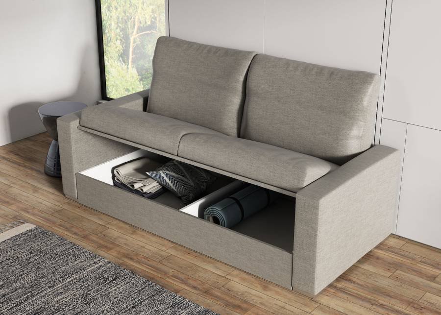 Living room by day, bedroom by night! Make the most of your space throughout the day with this double wall bed with lift-up sofa and desk
