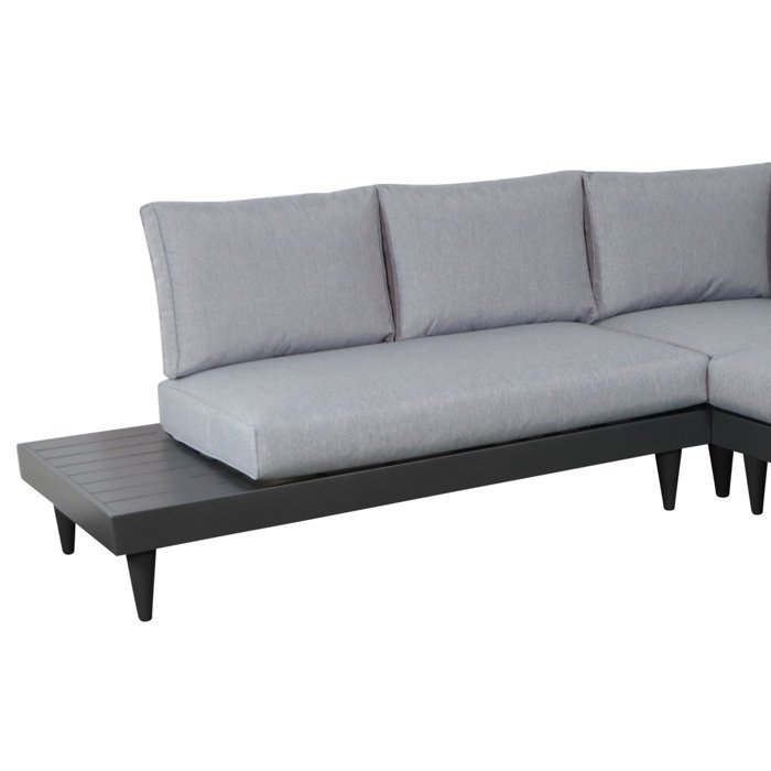 This commercial-grade patio sofa is a great addition to your outdoor space. It exudes a breezy vibe. The rust-proof aluminum frame of this piece comprises the perfect balance of beauty and functionality. The effortlessly complements any d?cor. Four plush cushions, made with water-resistant olefin fabric, provide inviting comfort. Whether in a semi-covered or uncovered area enjoy the outdoors in style and comfort.