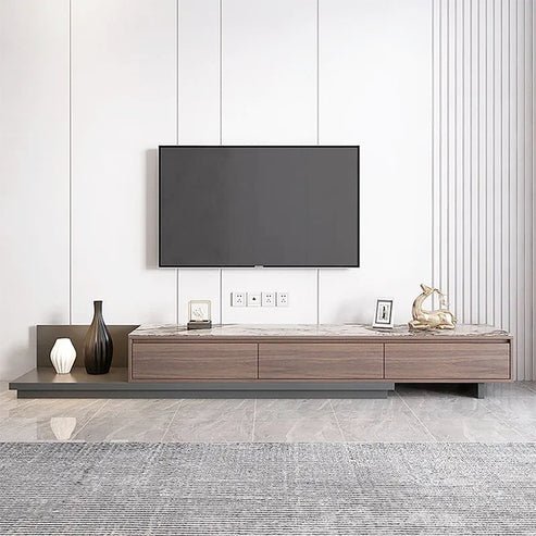 Fero Modern Extendable Stone Top Walnut Wood TV Stand
