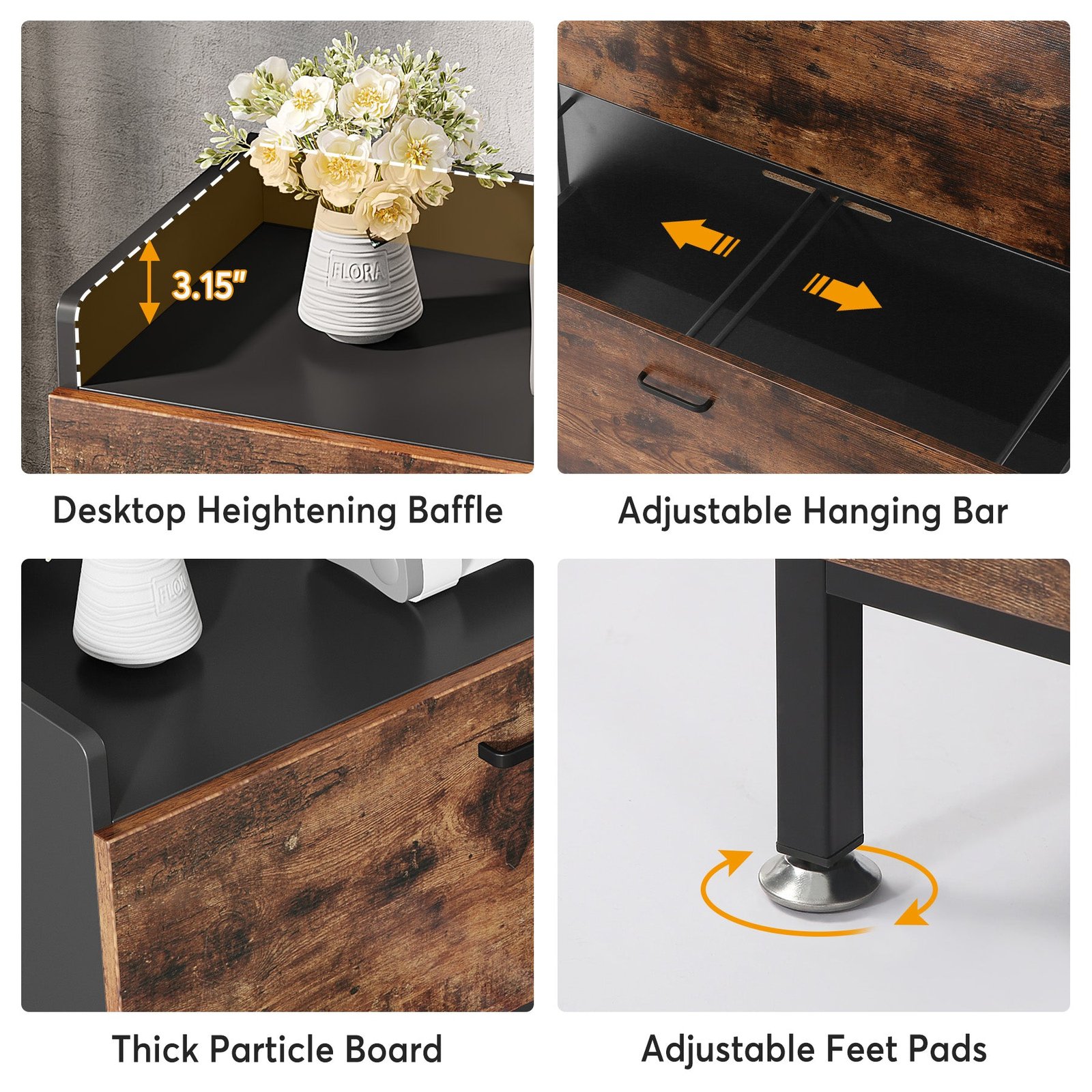 BUILT TO LAST MATERIAL ? Made of thick E1 particle board with a waterproof melamine finish, this lateral file cabinet is scratch-resistant, easy to clean, and touches smooth. Base powder-coated metal legs enhance the whole stability. It is ideal for long-term use.