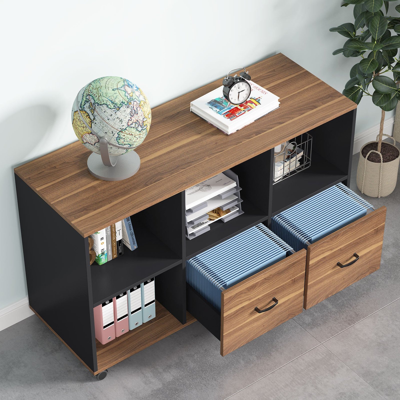 Large Storage Space ? The Laterals filing cabinet (size:43?*26 ?15.7?)*features with Spacious desktop for the printer and four open shelves for printing paper, books office supplies organized. Two drawers are suitable for the letter-size file.