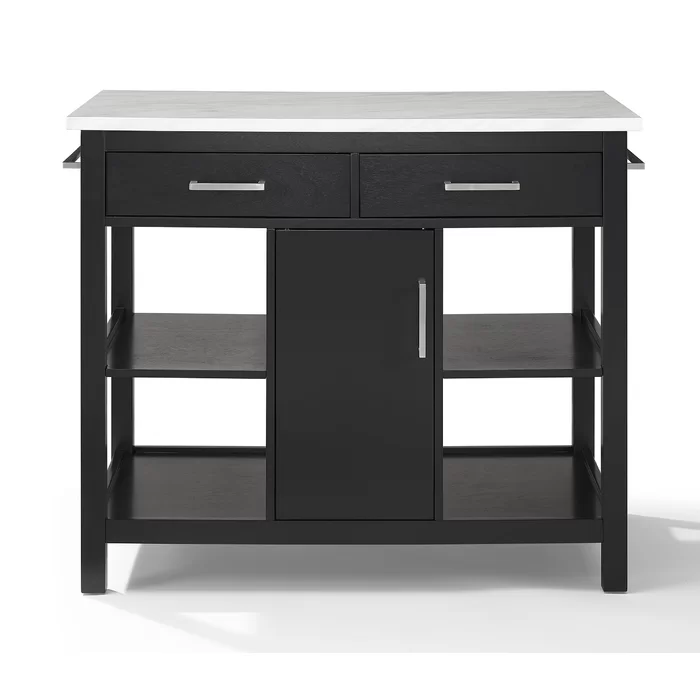 - Two upper drawers for utensils, two open shelves on both sides, and a central cabinet.