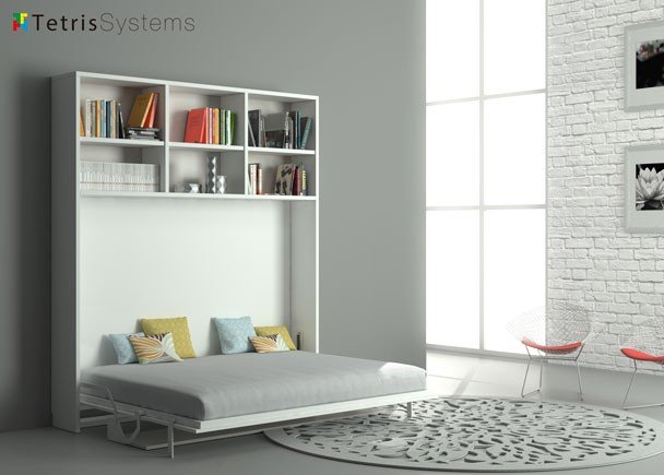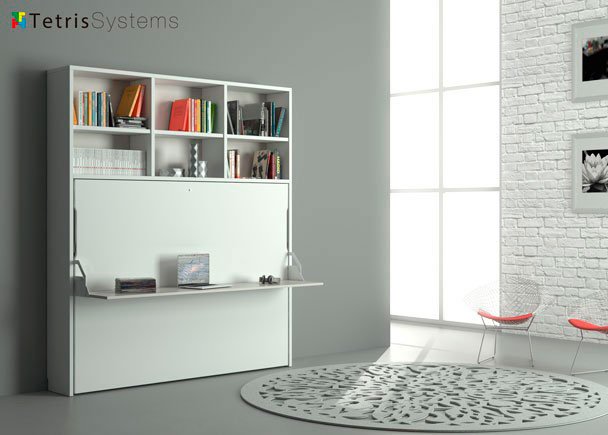 In just 35 cm of depth, the Tetris System horizontal folding bed includes a 150×190 cm bed , with easy and smooth opening , and an office area where you can study or work from home.