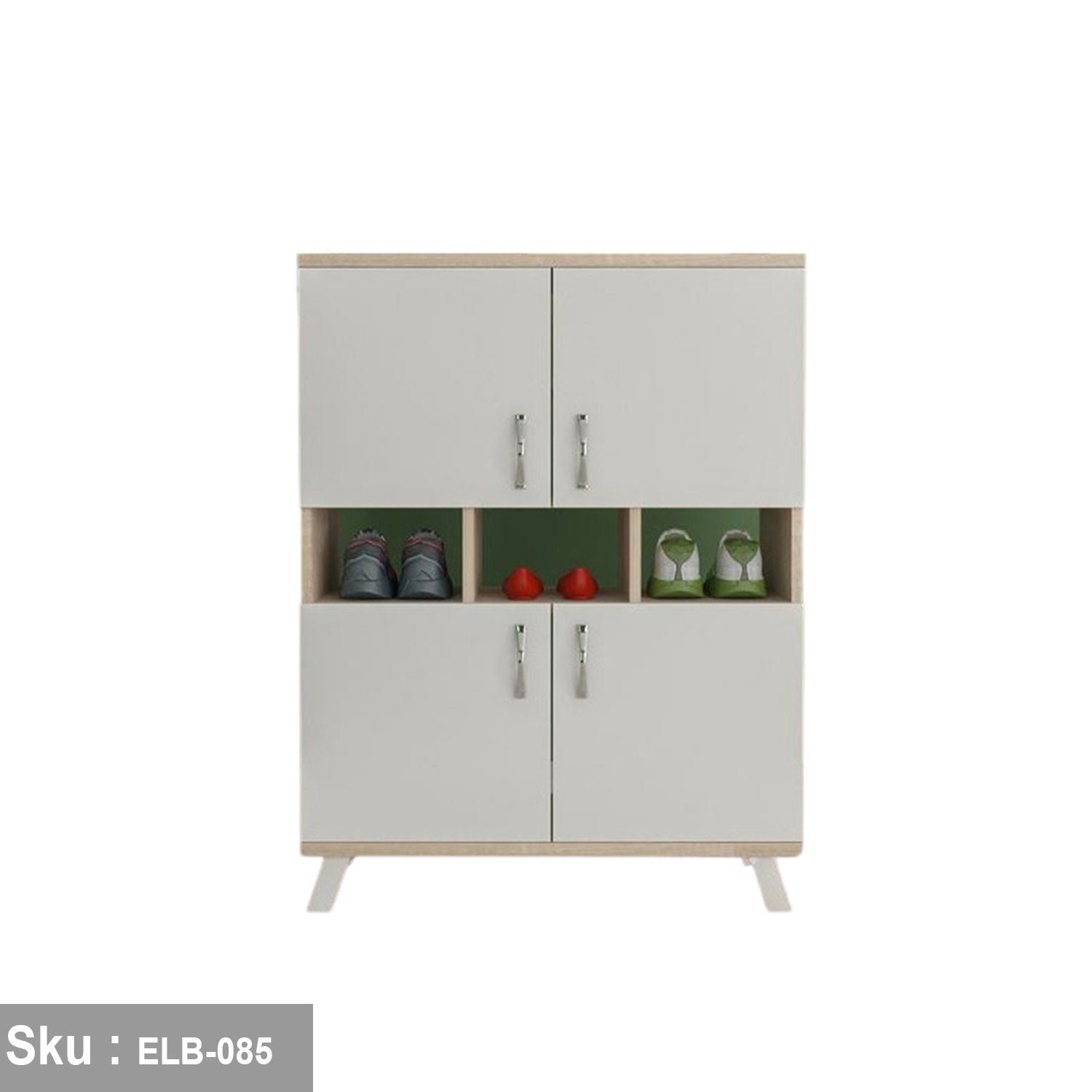 High-quality MDF wood and consists of a shelf and two storage units, each of which contains two shelves