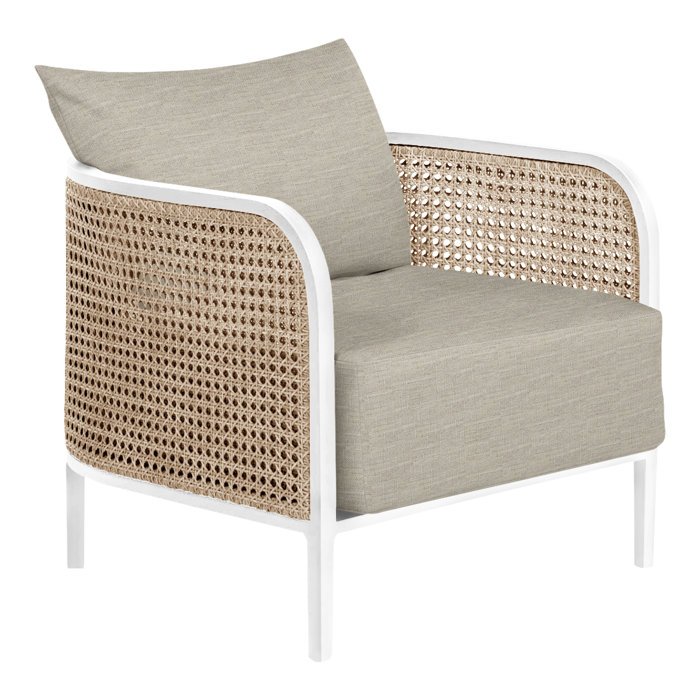 Inspired by classic open-cane weaving, the Havana lounge chair is updated with all-weather, natural resin wicker framed by black aluminum for lasting good looks and durability. The gently curved silhouette of this piece gives it a unique silhouette that will enhance any outdoor setting.