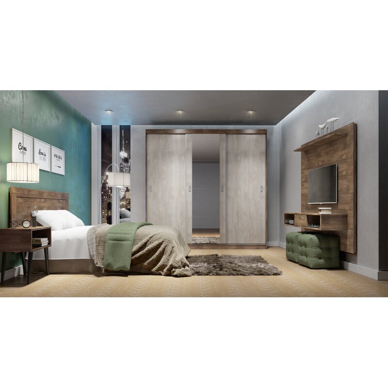 The front of the modern floating TV stand extends to three large drawers. This contemporary piece is a little media console with a lot of storage.