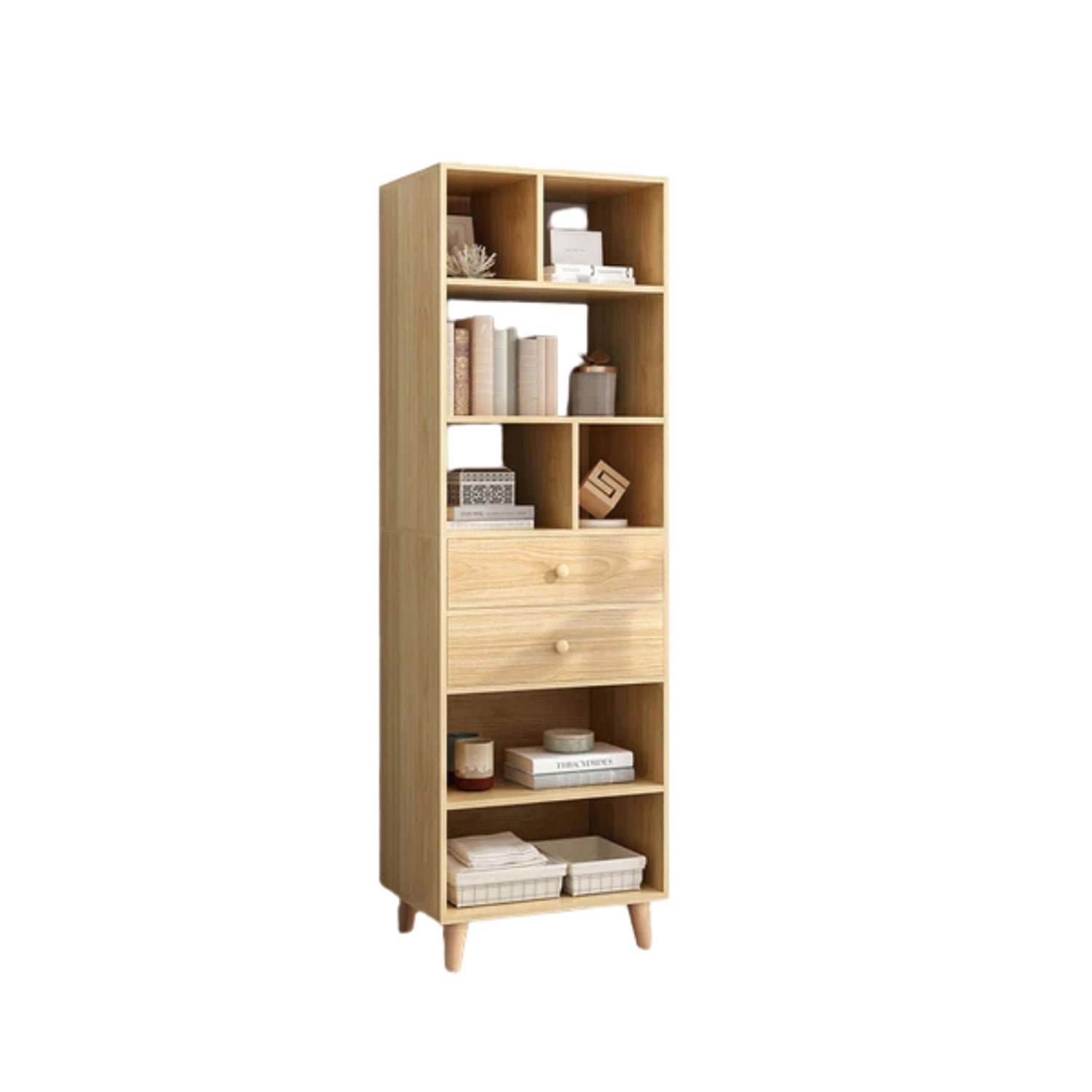 Made of high-quality MDF wood, the elegant bookcase features a practical, modern design that provides ideal storage and organization space for books and home accessories, adding an aesthetic touch to your home decor.