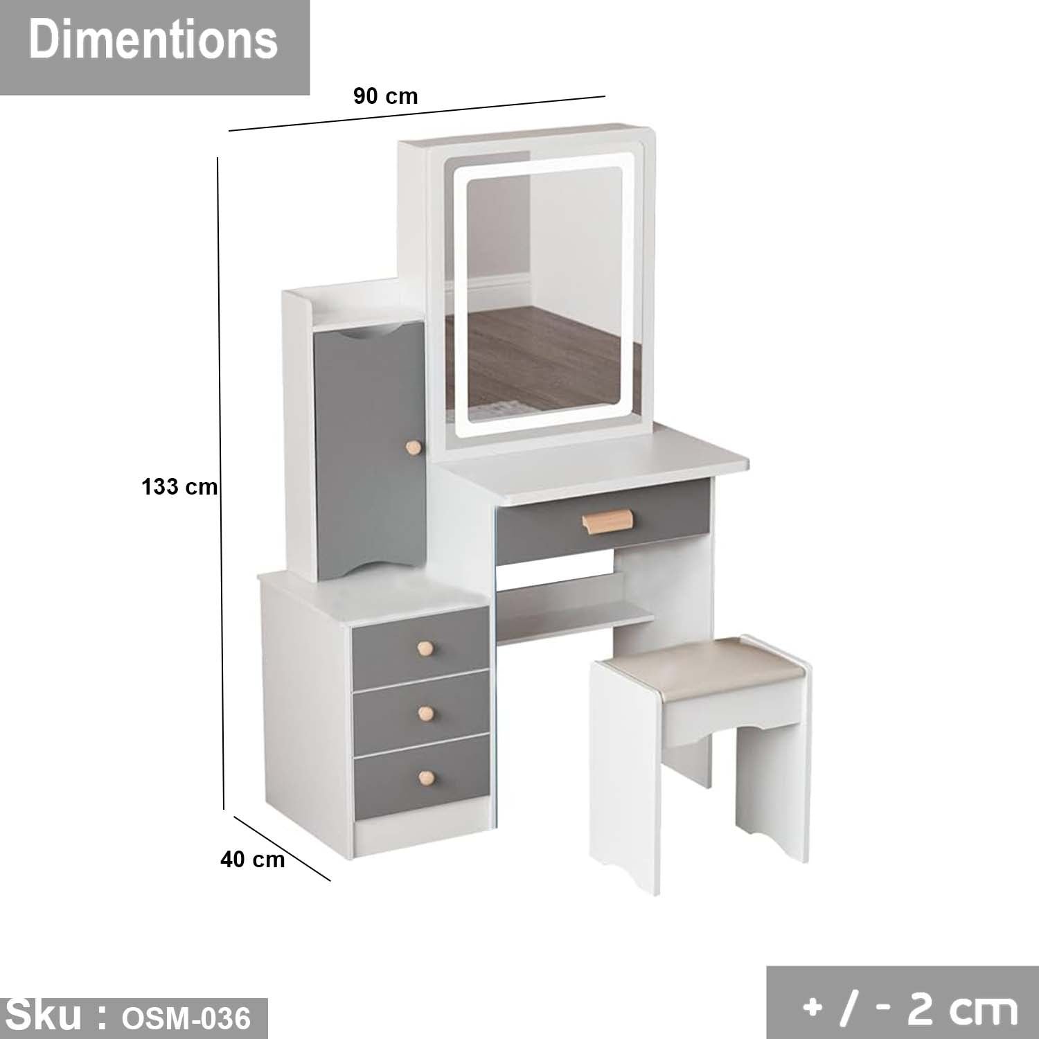 Be the first to review “High quality MDF wood dresser with pouf – OSM-036”