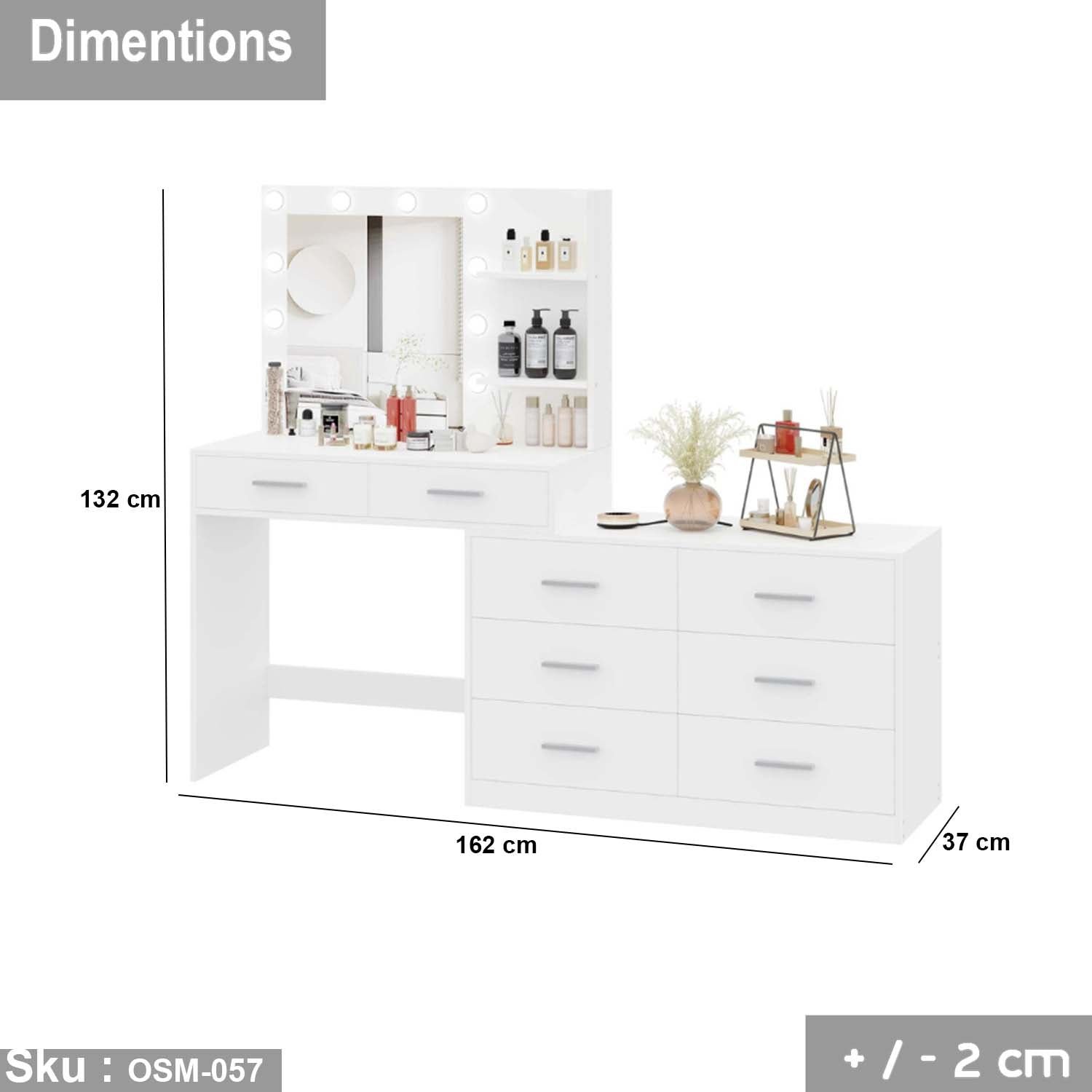 Dresser dimensions: Width 162 cm – Depth 37 cm – Height 132 cm