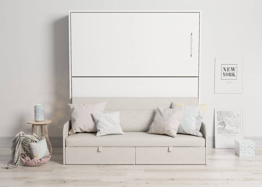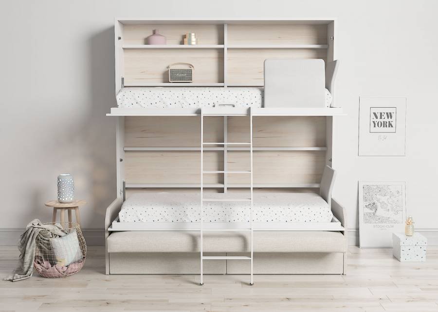 Horizontal folding bunk bed 90 x 190 cm with sofa and two drawers