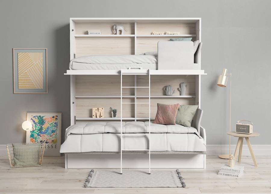 In the space that would be occupied by just one bed, you can have 3 beds that are easy to hide away to create free space , thanks to the pull-out bed base located at the bottom. During the day, a comfortable sofa , and at night, up to three beds suitable for 3 earthquakes (your children or guests).