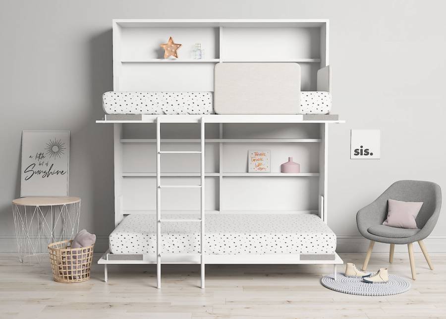 Horizontal folding bunk bed 90×190 with ladder shelf and protector