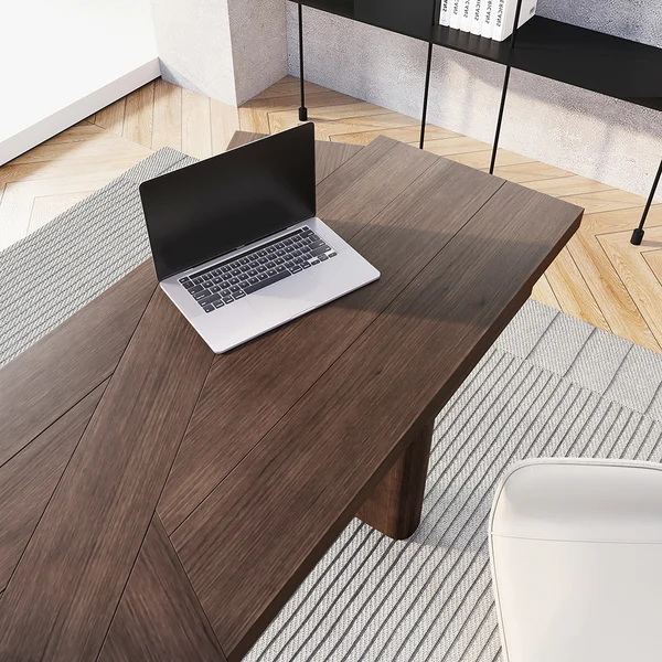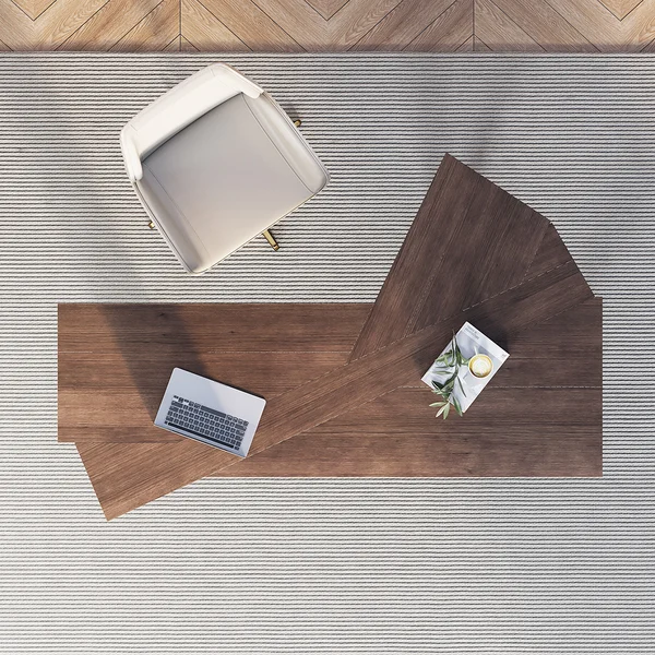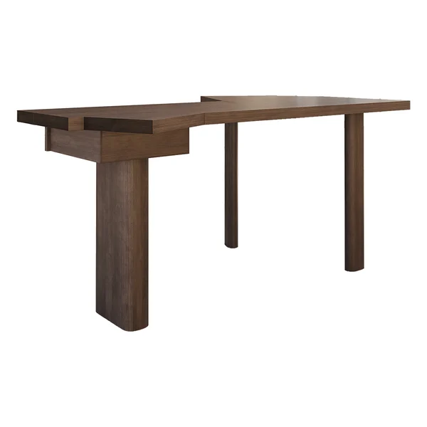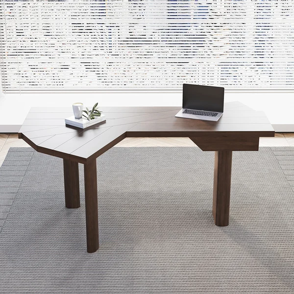 Get this elegant L-shaped desk features a unique design with two irregular desktops and tree wood legs.